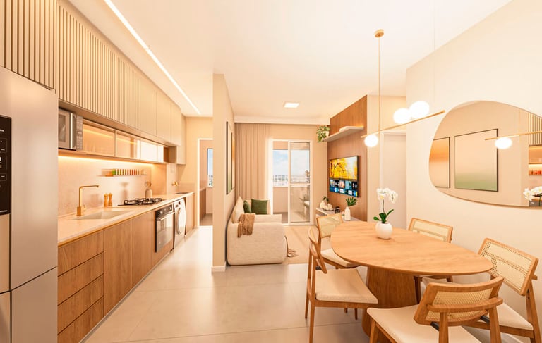 O Gran Reserva Embraplan traz apartamentos modernos de 52,63 m² a 63 m², com 2 dormitórios — com opção de até 2 suítes — e varanda gourmet com ponto de gás. As unidades contam com design inteligente, infraestrutura para aquecedor a gás e passagem para até 3 pontos de ar-condicionado, oferecendo conforto e praticidade em cada detalhe.