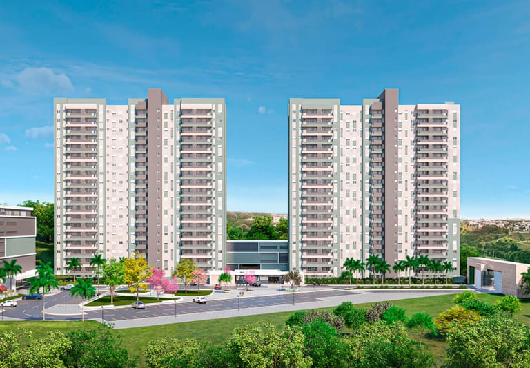 Condomínio de apartamentos com grande variedade de plantas a partir de 49m² com lazer completo e equipado, elevador em todas as torres, varanda em todos os apartamentos, salão de jogos e muito mais.