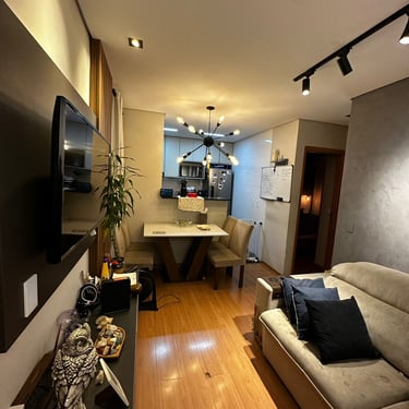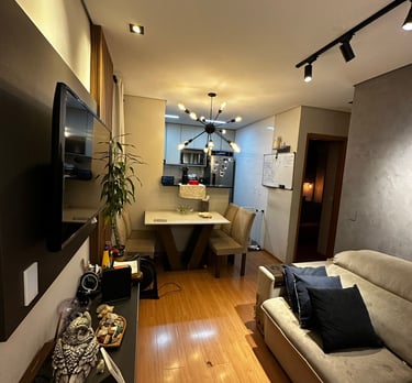 Apartamento de 45m² no 2º andar, totalmente planejado e com todos os móveis inclusos.