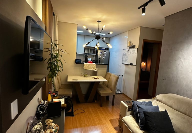 Excelente apartamento de 44m², com 2 dormitórios, sala aconchegante, cozinha funcional, banheiro e 1 vaga de garagem.