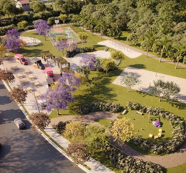 Ampla área verde (210 mil m²), ruas largas e clube com lazer integrado para família e convivência.